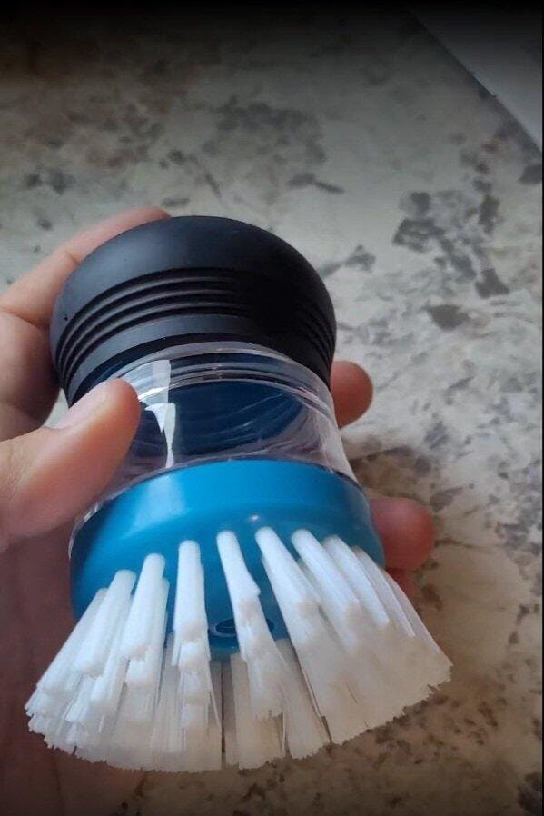 I’ve personally tested this soap-dispensing palm brush in my own kitchen, and it completely changed how quickly I can get dishes done. If you hate scrubbing burnt food or greasy pans, this tool genuinely makes the job faster, easier, and way less annoying.
